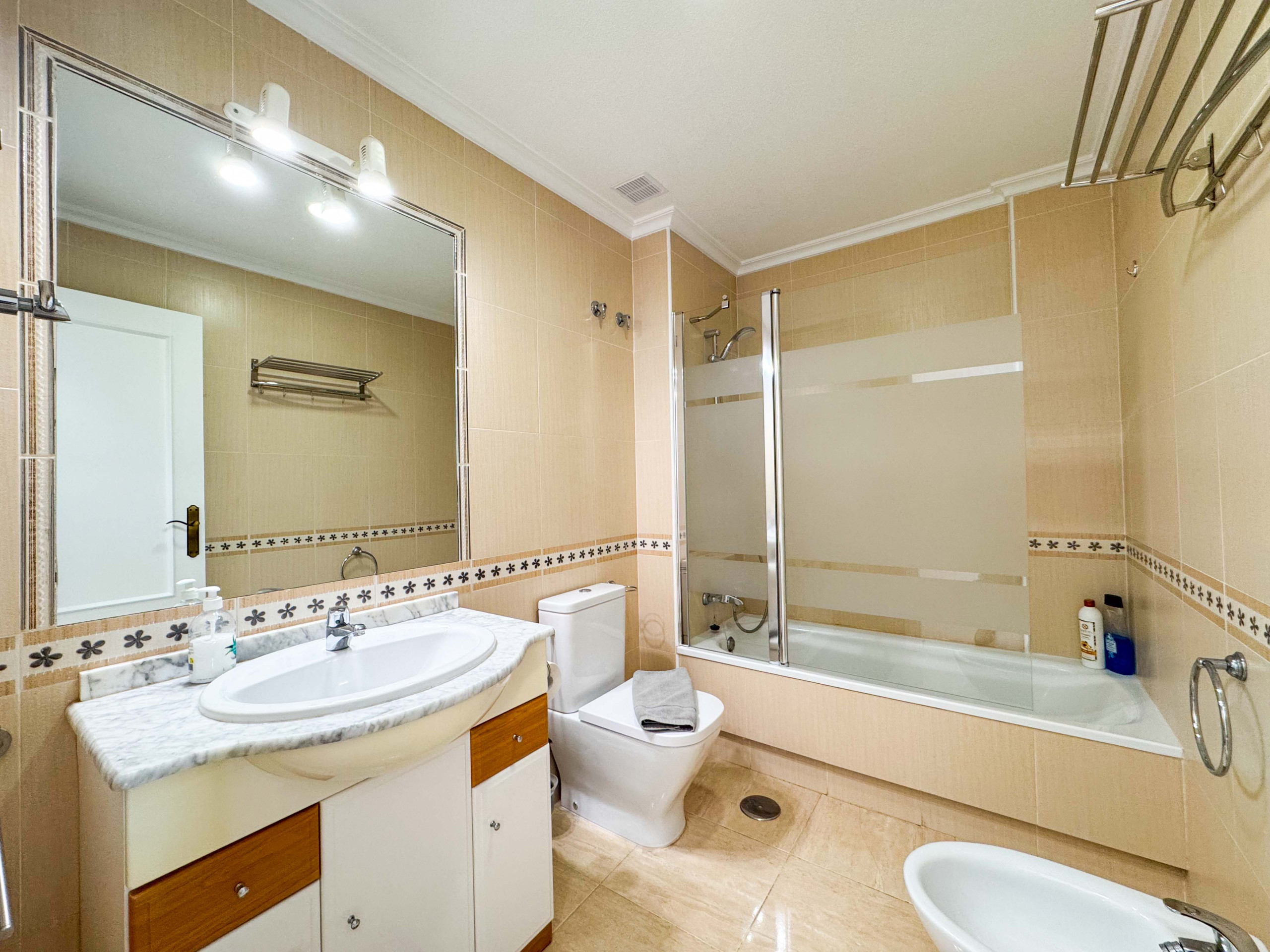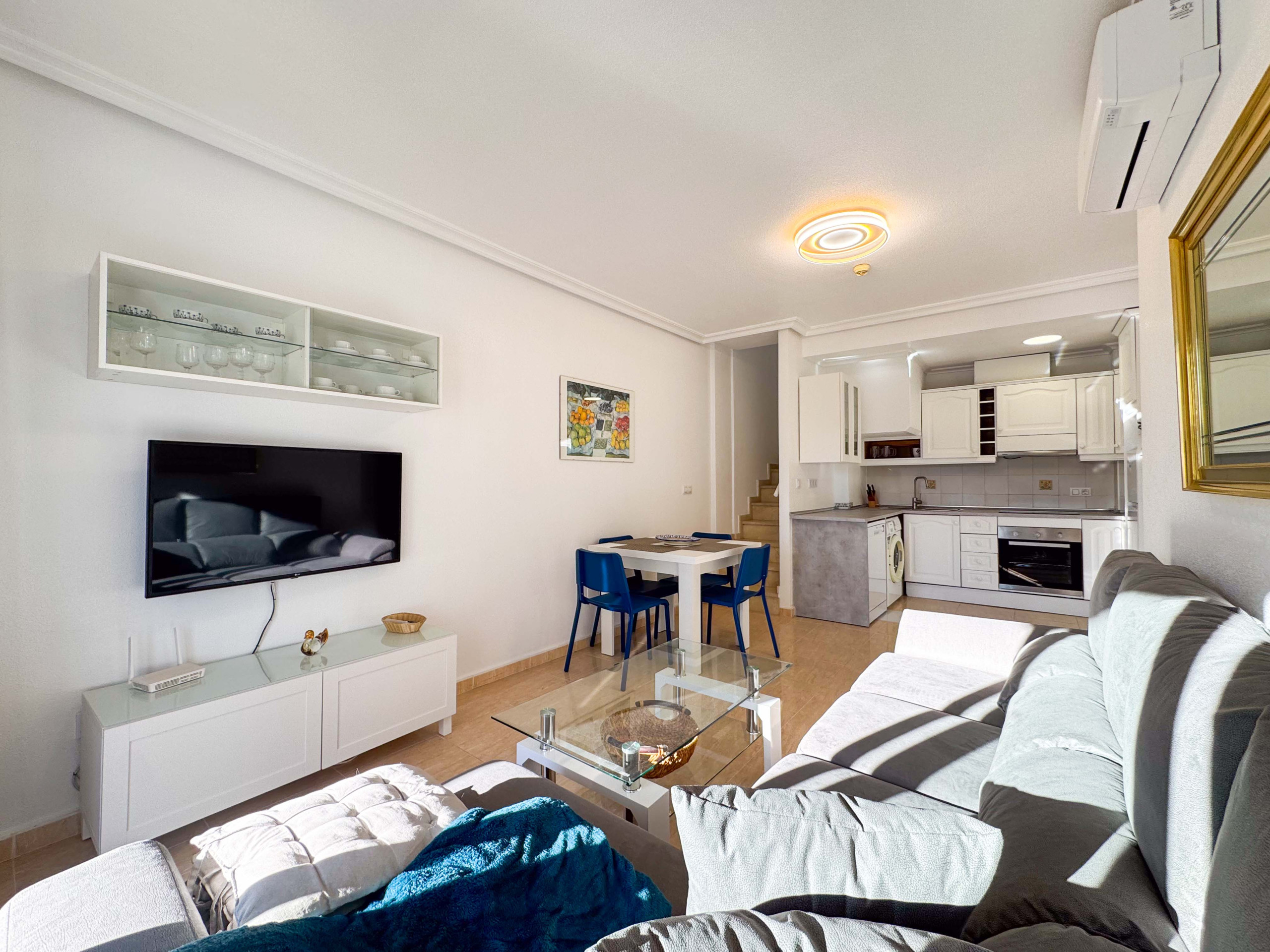 Die Ferienwohnung in La Zenia verfügt über 2 Schlafzimmer und hat eine Kapazität für 4 Person(en). Die gemütlich und voll ausgestattete Unterkunft verfügt über 65 m². Die Unterkunft befindet sich 20 m vom "Makai Cafe" entfernt, 50 m vom "Casa Manolo", 50 m vom "Cambridge Pub", 80 m vom "The Quiet Man", 300 m vom "La Mirada", 300 m vom zum Sandstrand "Playa La Zenia", 350 m vom "Parque La Zenia", 400 m vom "Paddy¨s Point Irish Bar & Restaurant", 400 m vom "Alejandros", 400 m vom "Paddy¨s Point", 500 m vom Supermarkt "Consum", 600 m vom Kiesstrand "Cala Cerrada", 1 km vom Supermarkt "Lidl", 1 km vom Supermarkt "Mercadona", 4 km von der Stadt "Villamartin", 4 km vom Golfplatz "Villamartin Golf", 6 km vom Golfplatz "Real Club de Golf Campoamor", 7 km vom "Hospital de Torrevieja", 8 km vom Freizeitpark "Parque de Atracciones de Paseo Torrevieja", 8 km von der Bushaltestelle "Estacion de Buses de Torrevieja", 9 km vom Wasserpark "Aquapolis Torrevieja", 10 km vom "Laguna Rosa Torrevieja", 14 km vom "Parque Natural de Las Lagunas de La Mata y Torrevieja", 55 km vom Flughafen "Aeropuerto de Alicante -Elche", 55 km vom "Aeropuerto de Alicante", 60 km vom Flughafen "Aeropuerto de Murcia", 60 km vom Bahnhof "Estación de Tren Alicante", 105 km vom Wasserpark "Aqualandia Benidorm", 105 km vom Freizeitpark "Terra Mitica Benidorm", in einer idealen Umgebung für Familien und am Meer.Die Unterkunft verfügt über einen Aufzug, Gartenmöbel, ein umzäuntes Grundstück, Terrasse 85 m², eine Waschmaschine, einen Grillplatz, ein Bügeleisen/-brett, ein Internetanschluss (WLAN), ein Föhn, ein Balkon, eine Klimaanlage im Wohnzimmer und einigen Zimmern, einen Gemeinschaftspool, eine Garage auf dem Grundstück, 1 Fernseher.Die Offene Küche mit Ceranfeld ist ausgestattet in einen Kühlschrank, eine Mikrowelle, ein Backofen, einen Gefrierschrank, Geschirr/Besteck, Kochutensilien, eine Kaffeemaschine, einen Toaster und einen Wasserkocher.