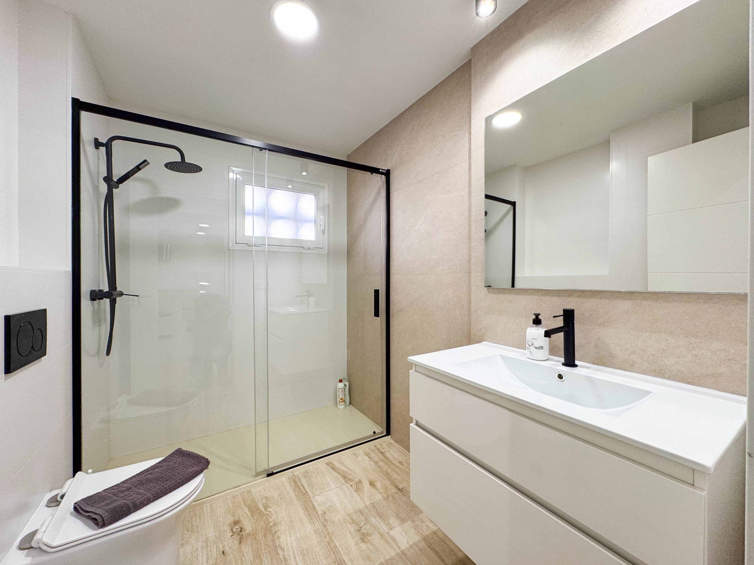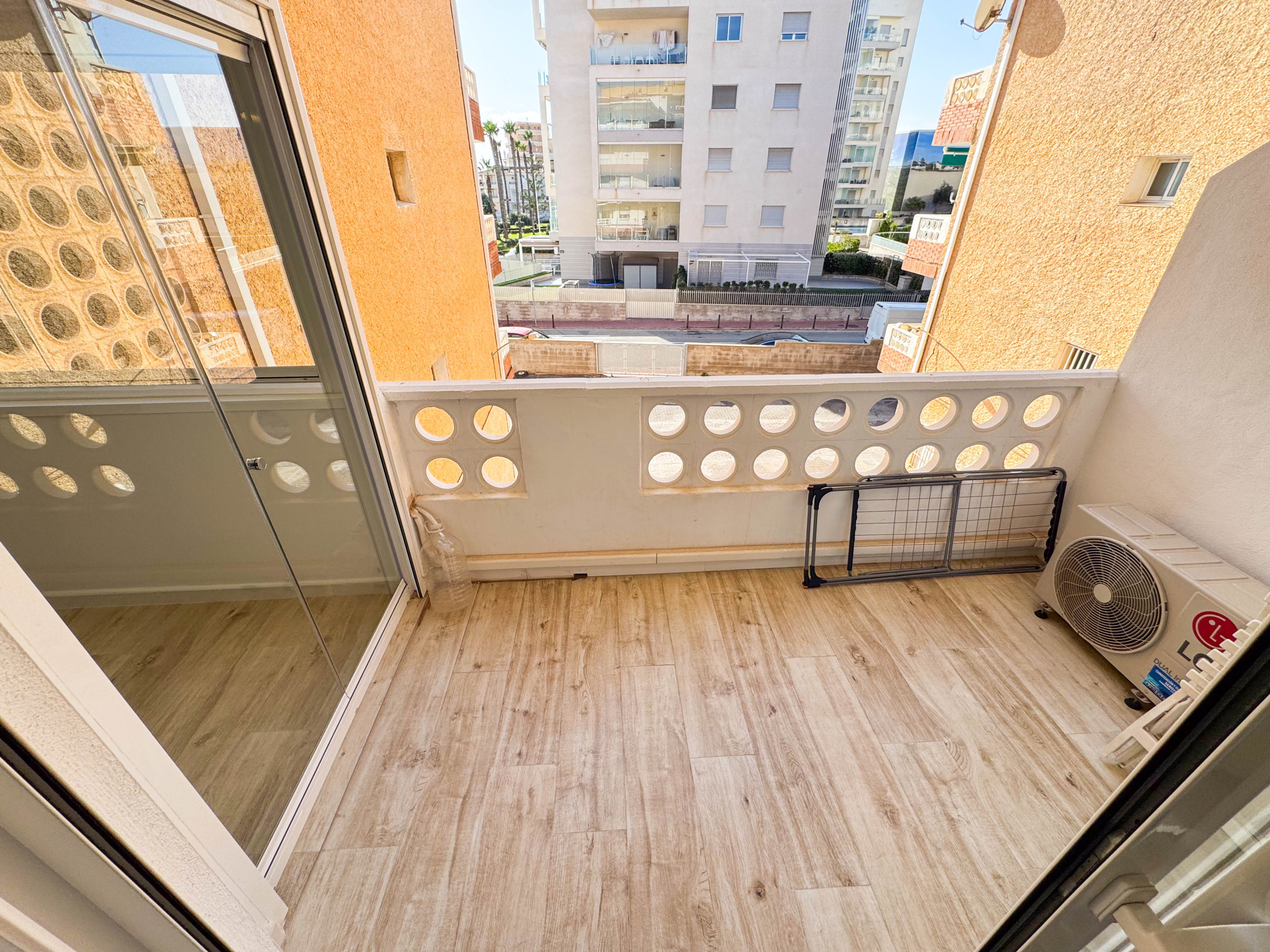 El apartamento maravilloso en Torrevieja (TorrelaMata) consiste de un salón grande con cocina americana, 3 dormitorios, 1 baño con ducha. Capacidad es para 6 personas (1 cama matrimonio y 2 camas individuales y 1 litera).