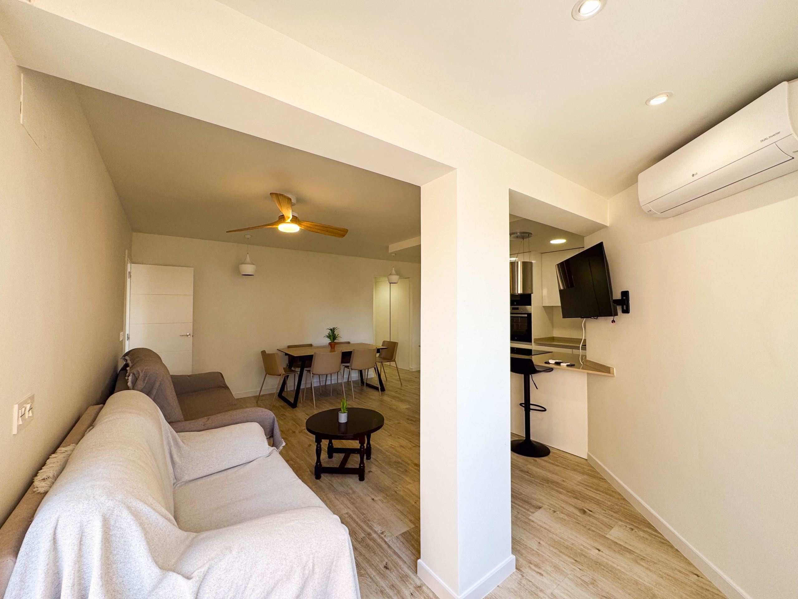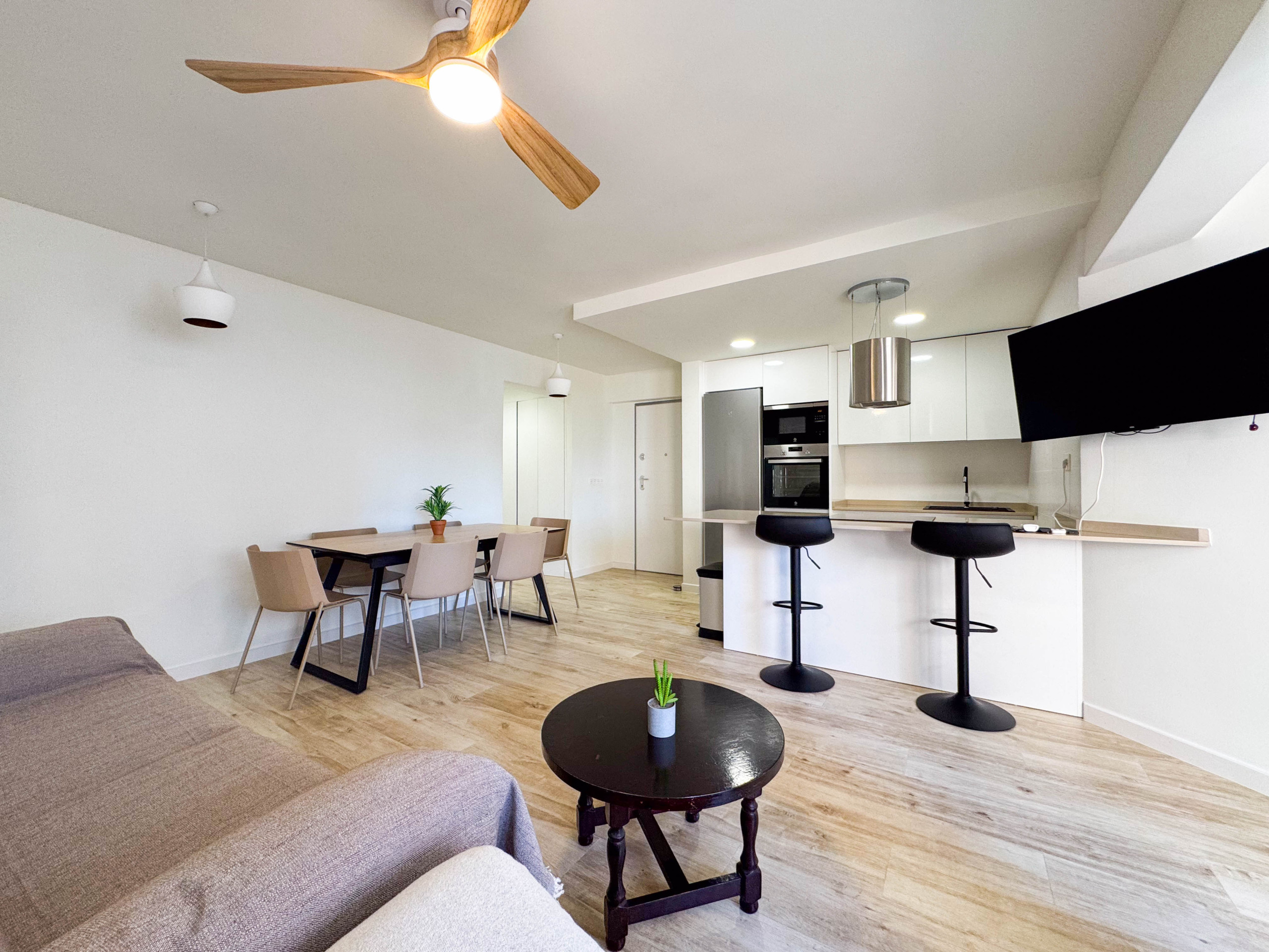Los apartamentos cuentan con todo lo necesario: Aire acondicionado en salón y los ventiladores en los dormitorios, WiFi, plancha, secador de pelo, lavadora, ropa de cama y toallas para cada persona, televisor.