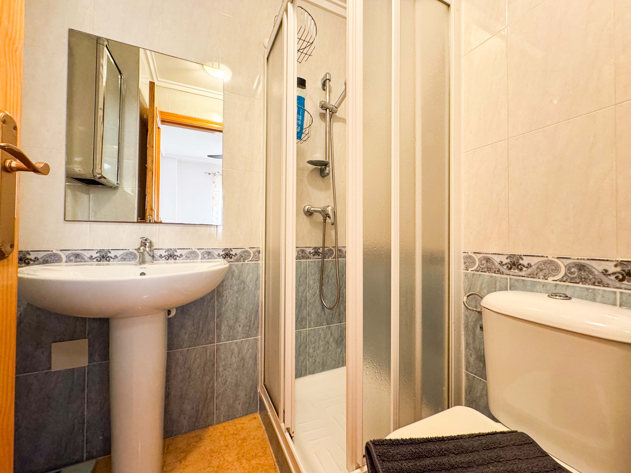El apartamento precioso en Torrevieja consiste de un salón con cocina americana, 1 dormitorio, 1 baño con plato de ducha, un balcon. Capacidad es para 4 personas (1 cama matrimonio y 1 sofa cama).