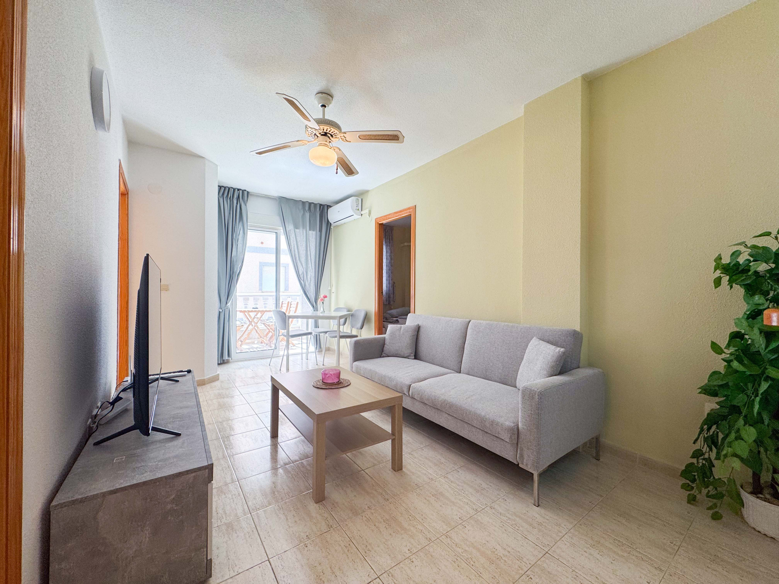 El apartamento está equipado con aire acondicionado (frío / calor) en salón. Los apartamentos cuentan con todo lo necesario: WiFi, plancha, secador de pelo, lavadora, ropa de cama y toallas para cada persona, televisor con canales Españoles.
