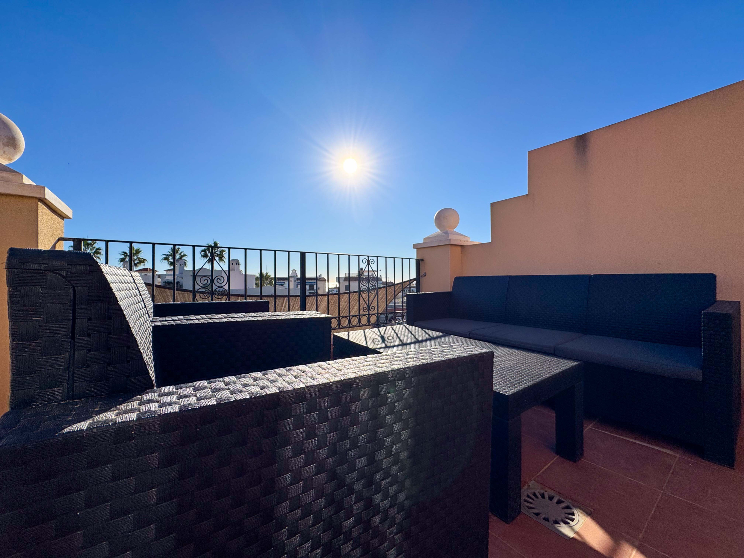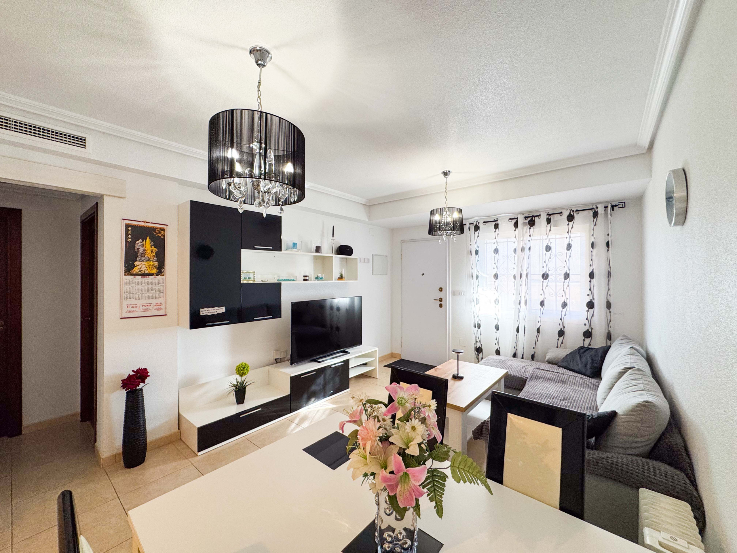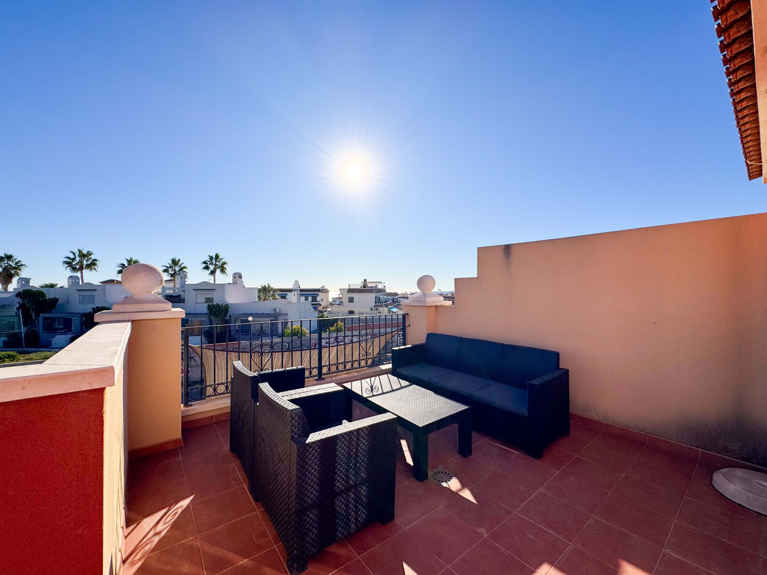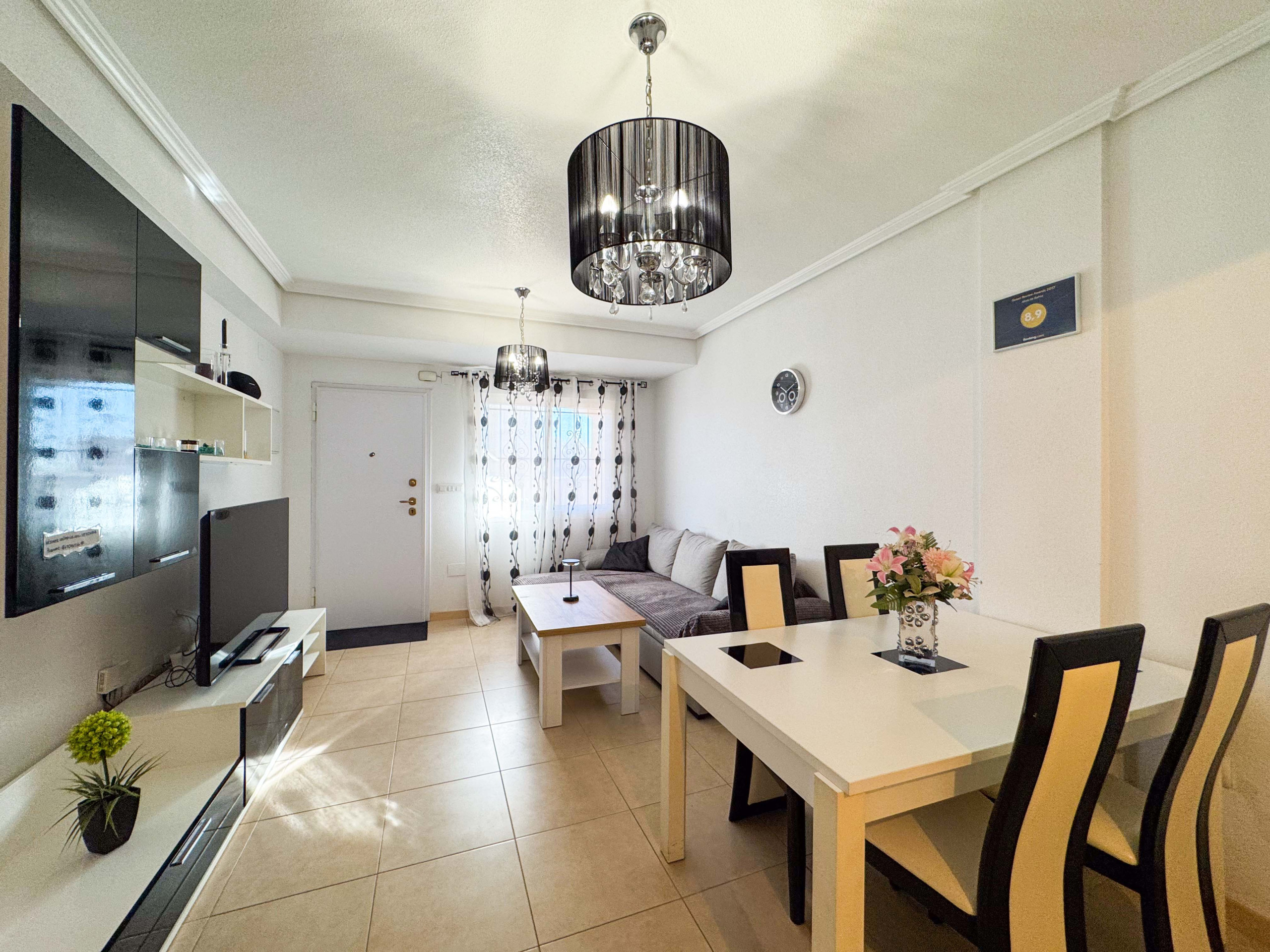 La casa esta ubicada dentro de una urbanización en Torrevieja, solo a unos 900 metros de la Playa de los Locos. Sin embargo, para los que prefieren bañarse en la piscina, hay una piscina comunitaria dentro de la urbanización.