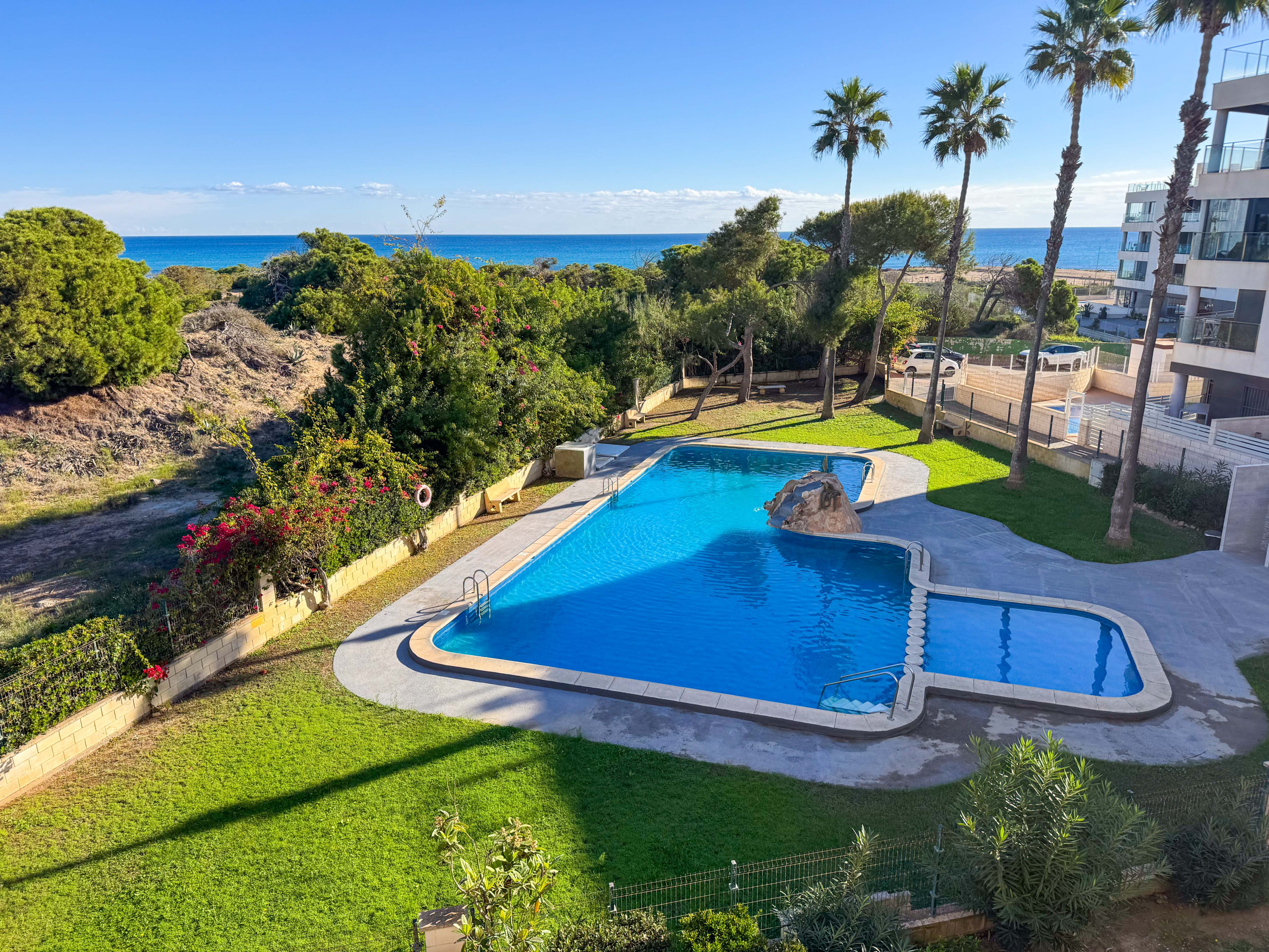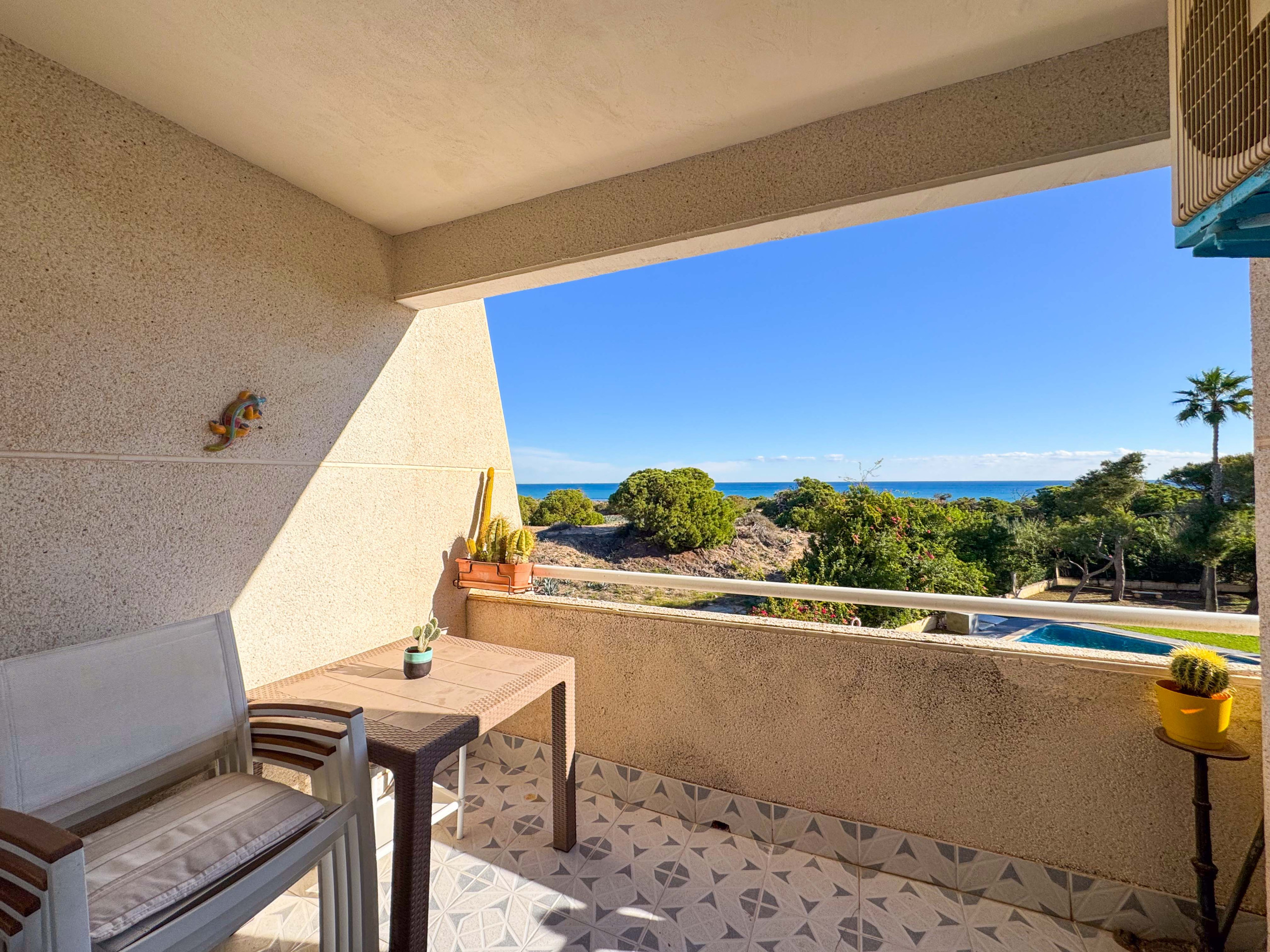 Within walking distance, you'll find an array of typical Spanish restaurants and cafeterias, stylish beach bars, supermarkets, and two pharmacies. The center of La Mata is just 1 km away and with a nearby bus stop, you can easily reach the center of Torrevieja in approximately 15-20 minutes by bus. Alicante-Elche airport is only 39 km away and Torrevieja bus station is approximately 5.5 km away. Don't miss out on this fantastic opportunity to experience the best of the Costa Blanca!