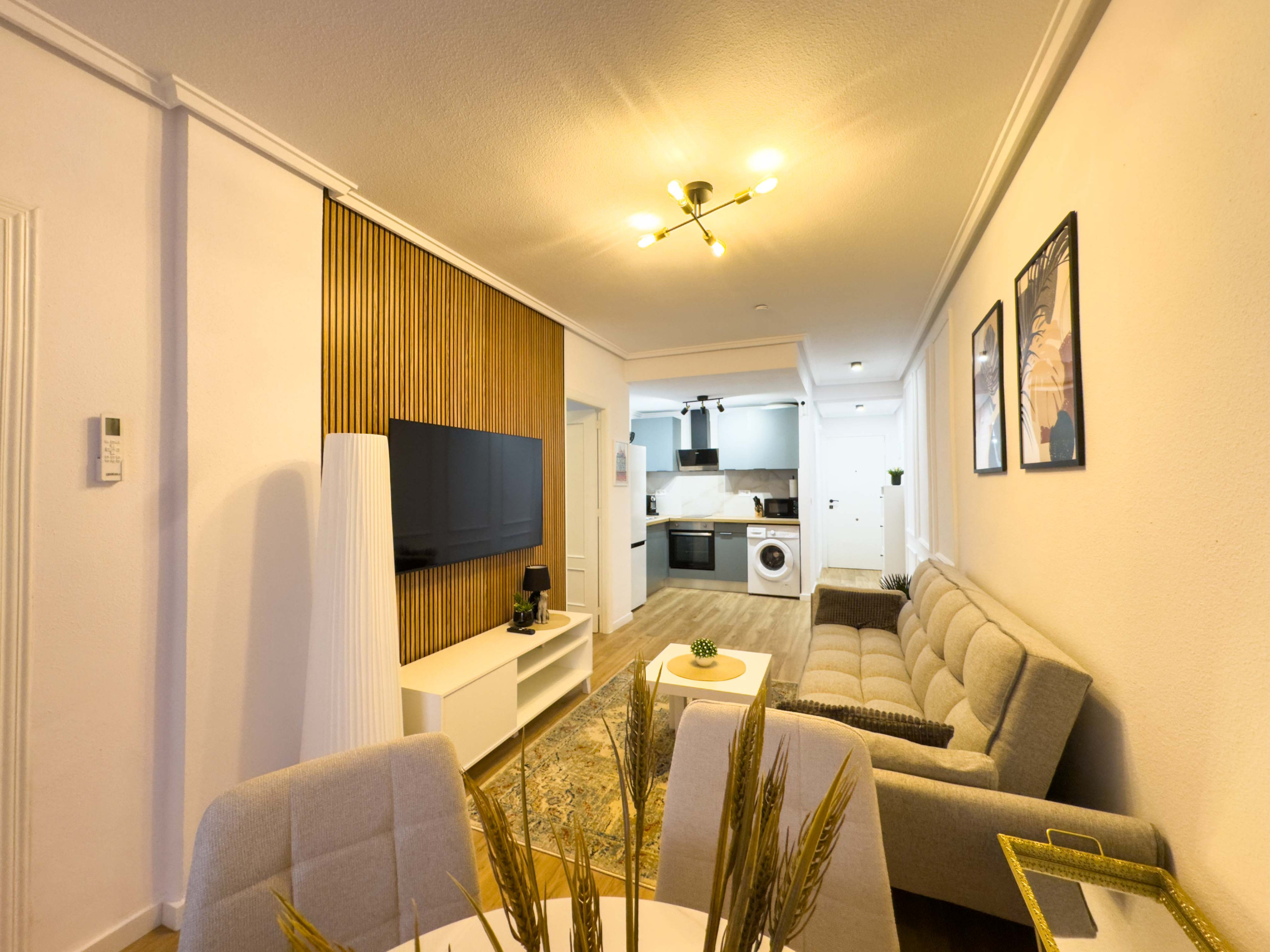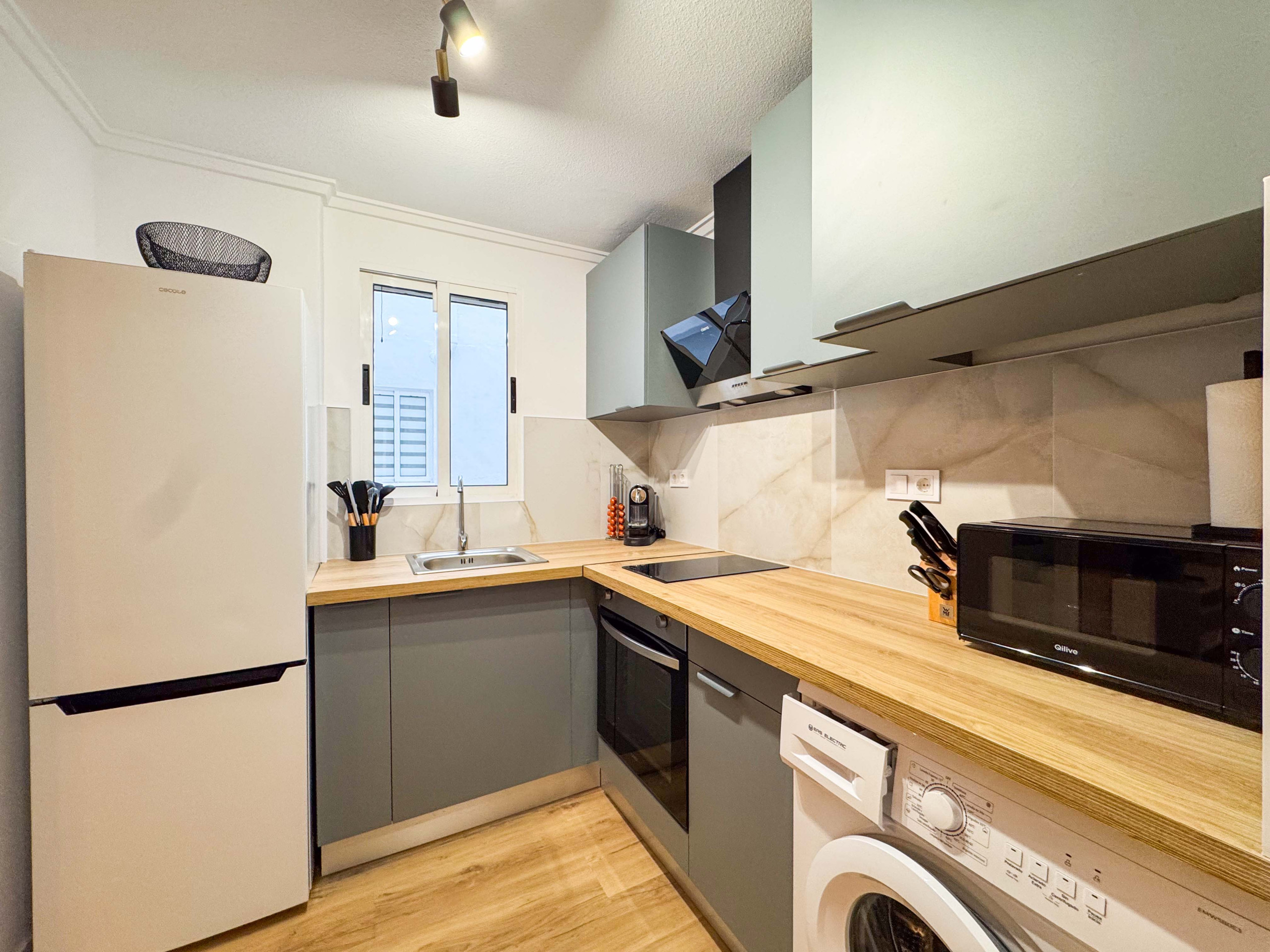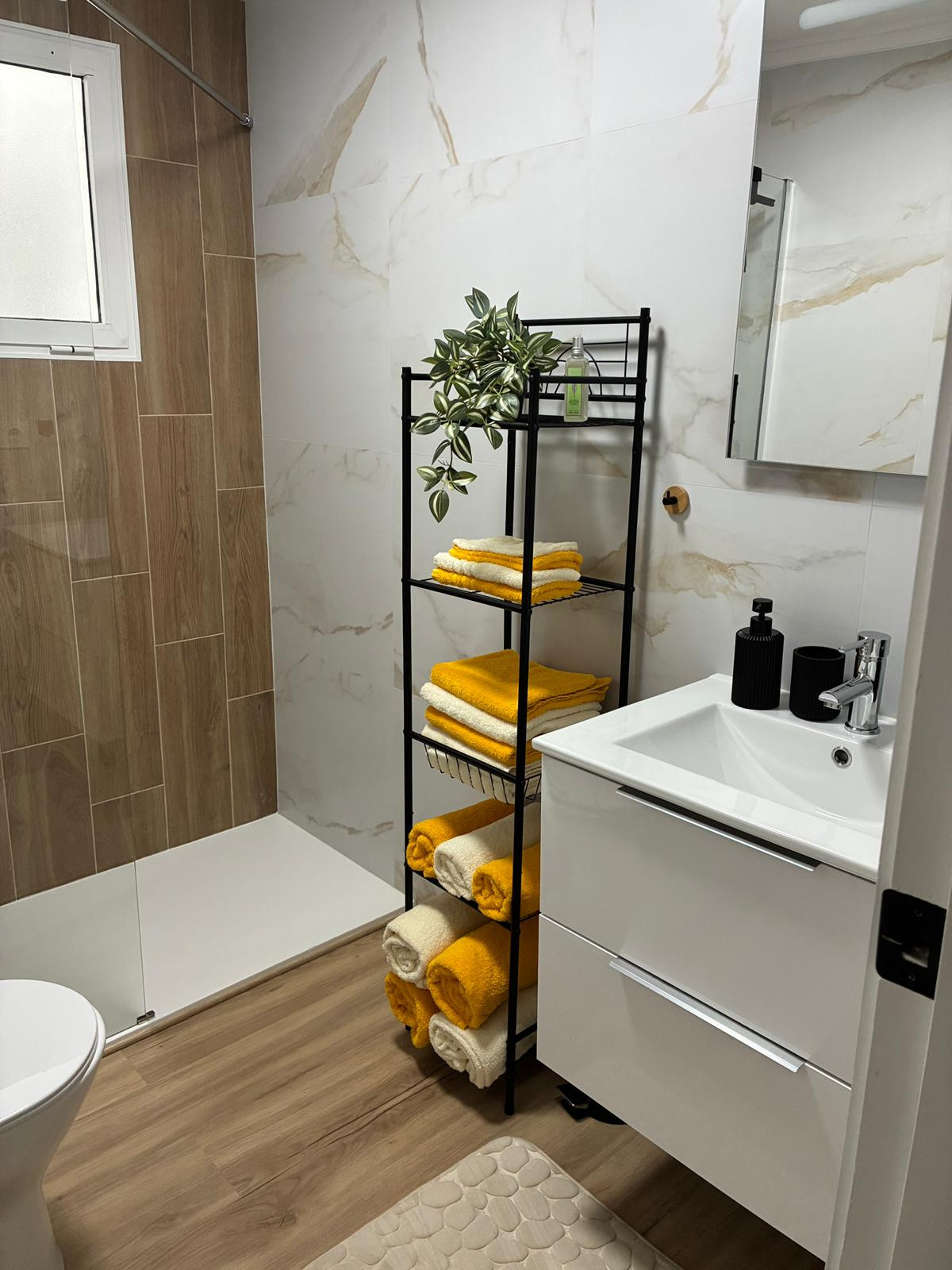 The apartment is equipped with air conditioning (hot / cold) in the living room. The apartments have everything you need: WiFi, iron, hair dryer, washing machine, bed linen and towels for each person, TV with Spanish channels.