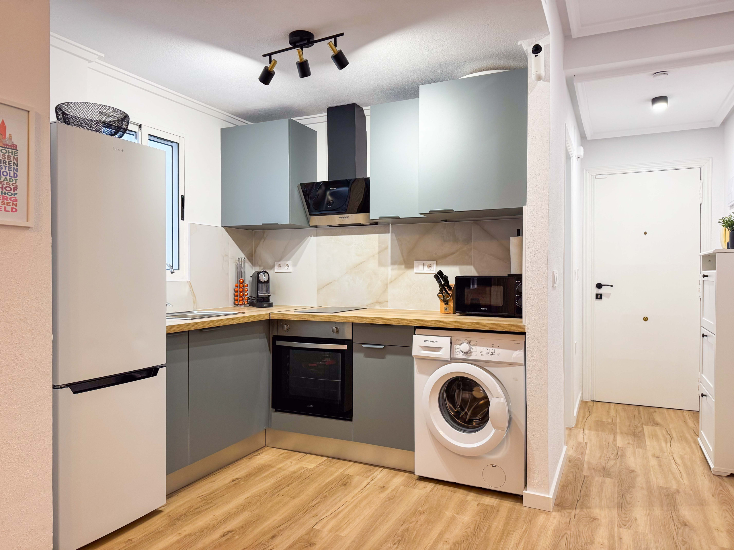 In addition, it has a washing machine, an iron for clothes and an ironing board, WIFI and two televisions.