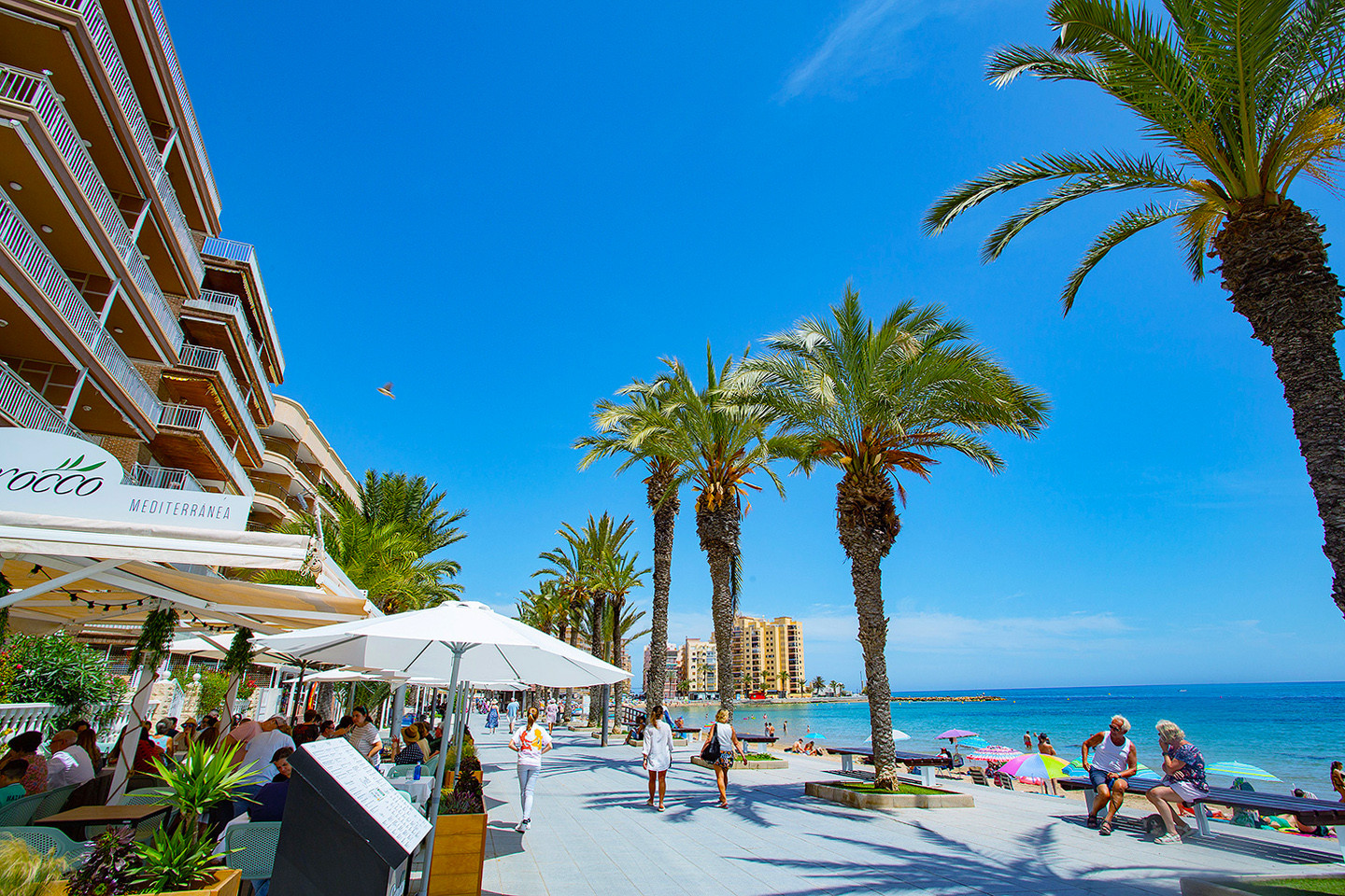 It is located in Torrevieja in a green area with palm trees by the sea and only about 50 meters from Los Locos beach.