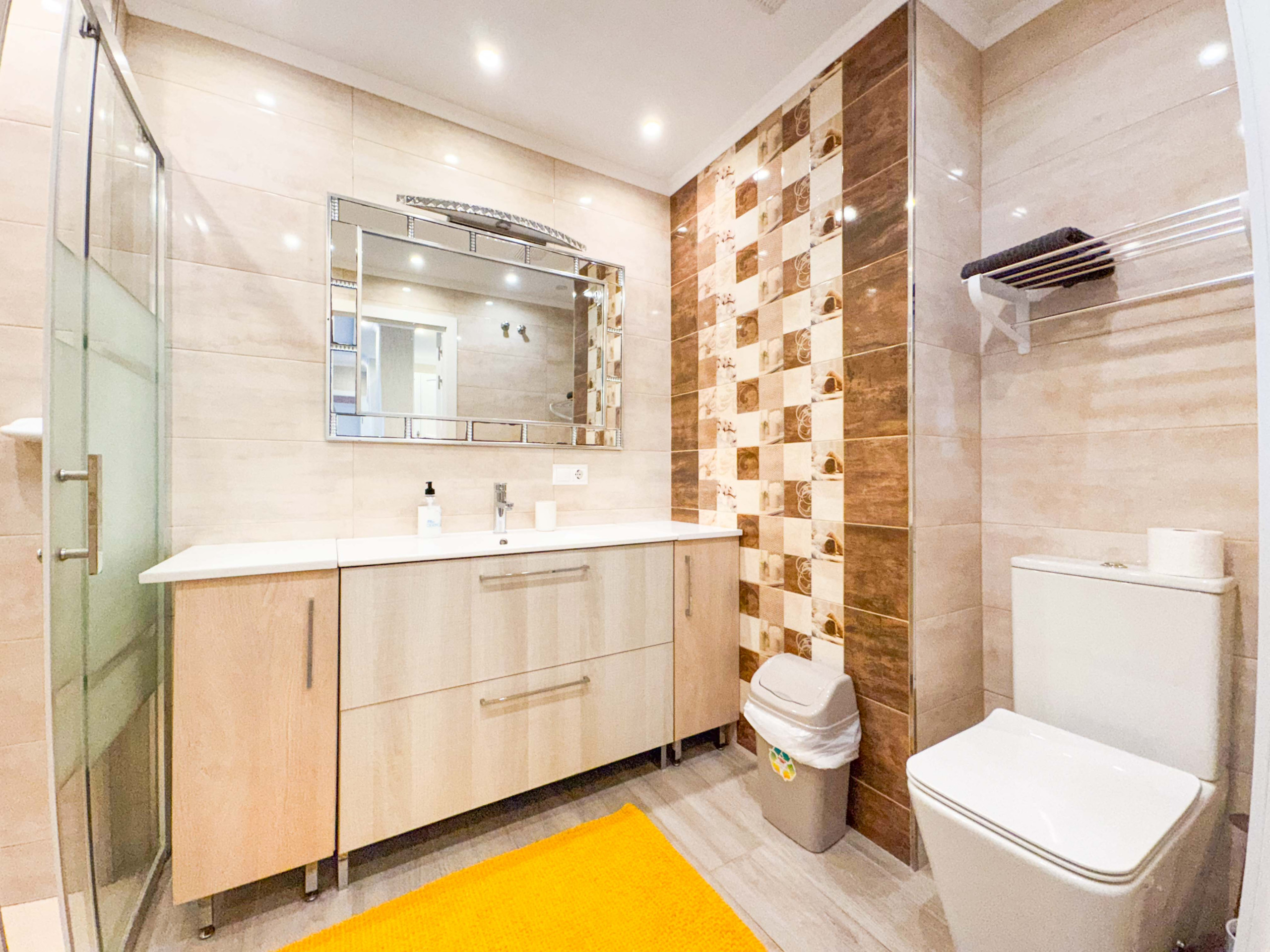 The apartment is equipped with air conditioning (hot / cold) in the living room. The apartments have everything you need: WiFi, iron, hair dryer, washing machine, bed linen and towels for each person, TV with Spanish channels.
