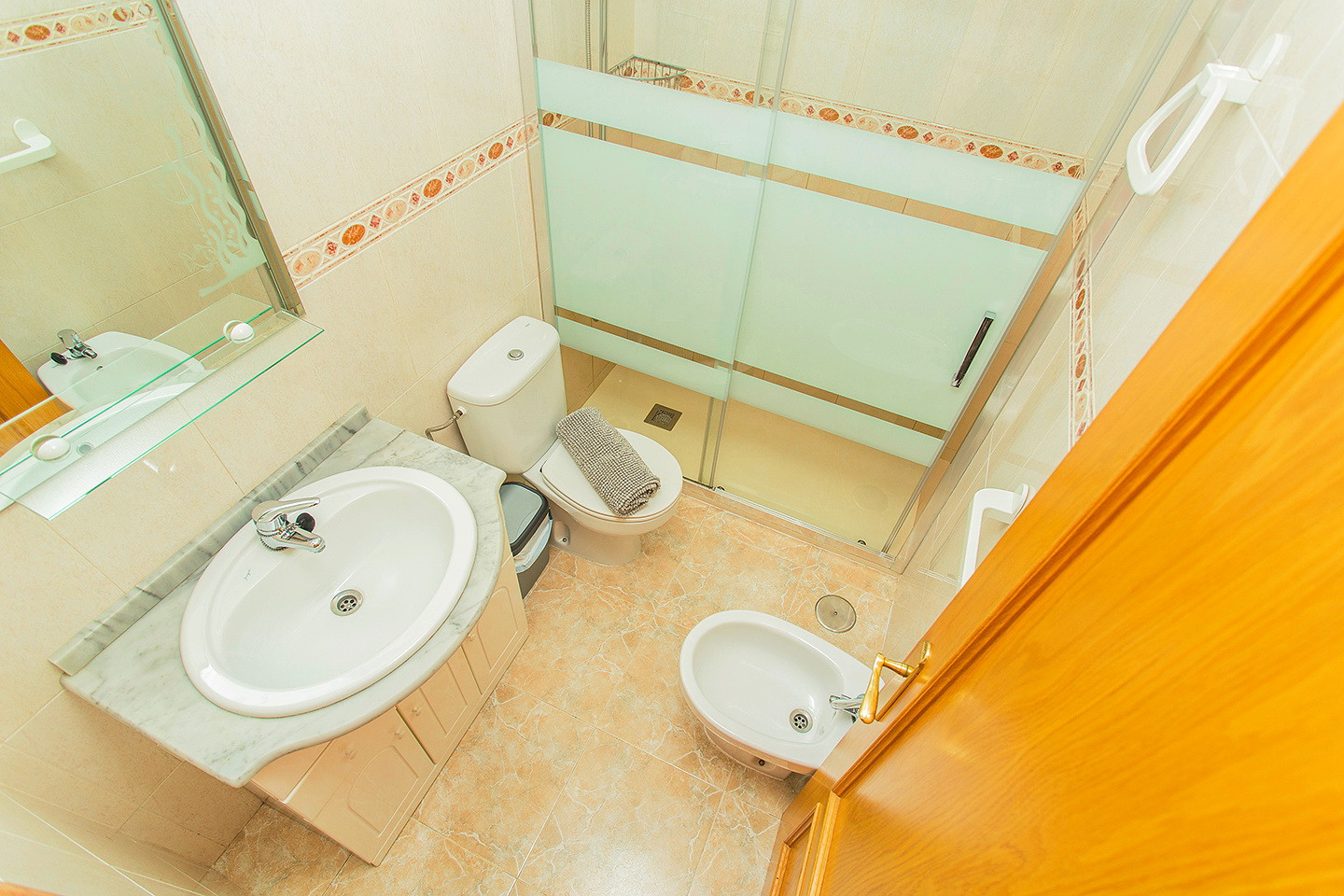 The apartment is equipped with air conditioning (hot / cold) in the living room. The apartments have everything you need: WiFi, iron, hair dryer, washing machine, bed linen and towels for each person, TV with Spanish channels.