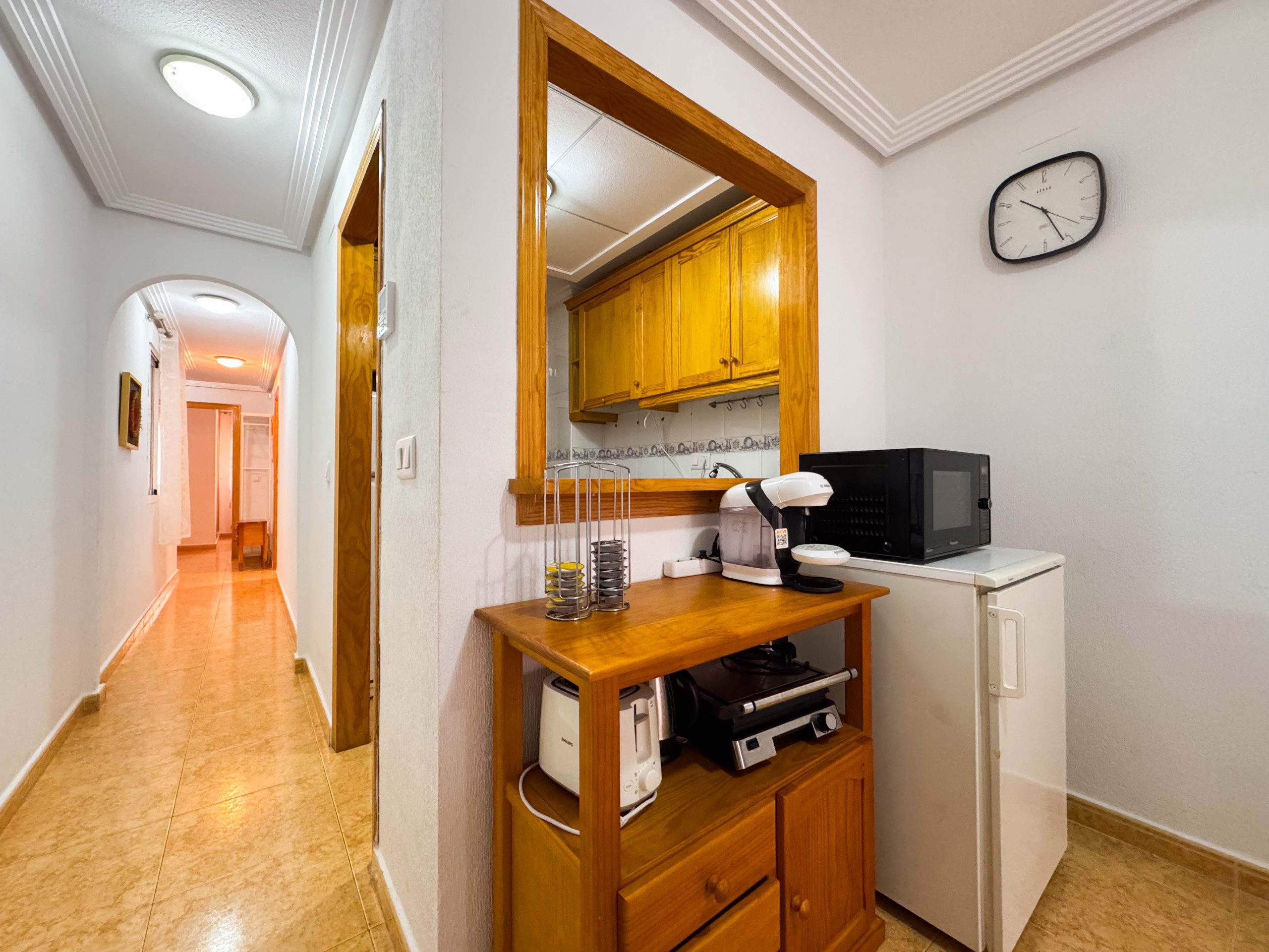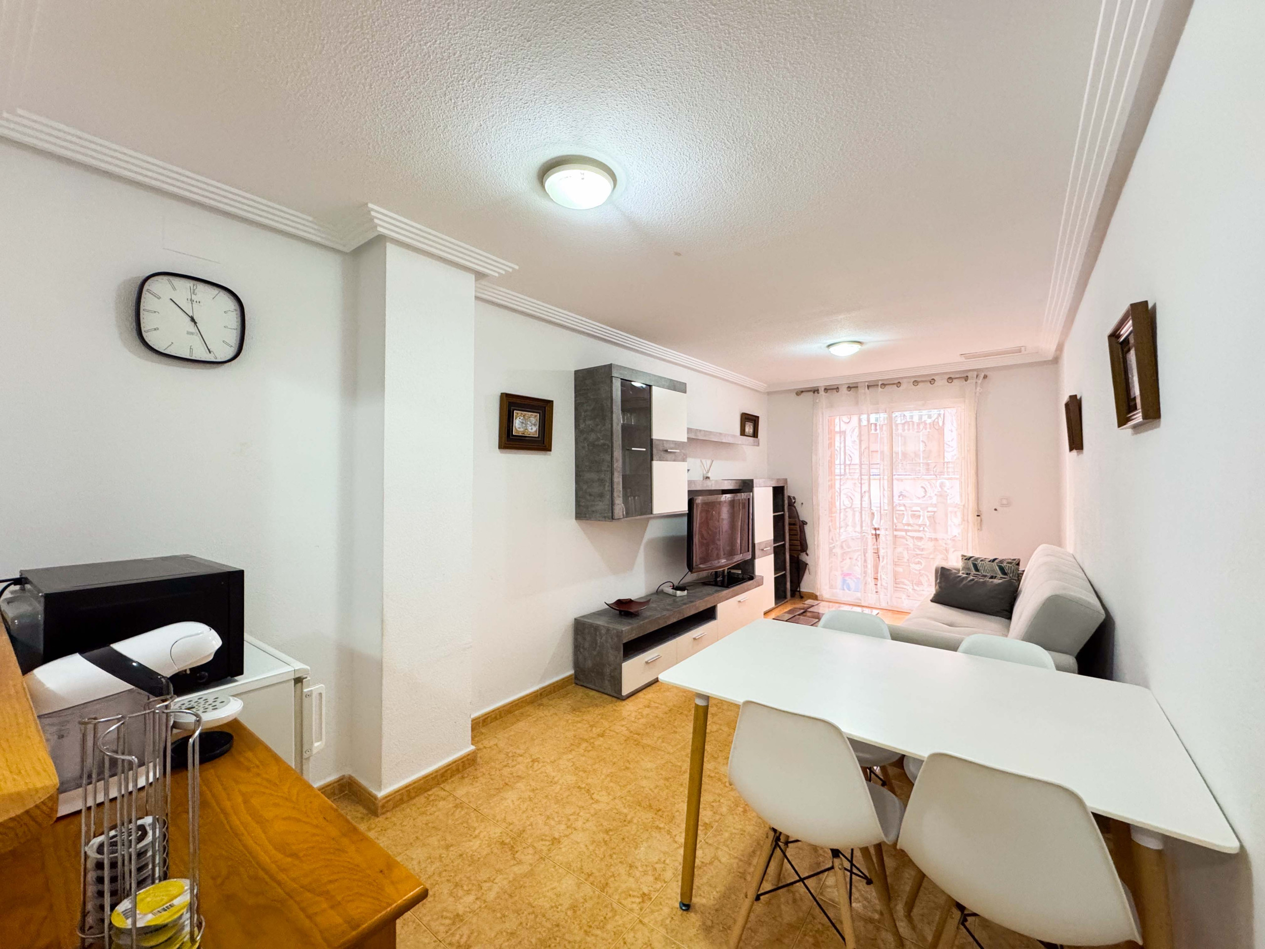 Красивая квартира в Торревьехе состоит из гостиной с кухней, 1 спальни, 1 ванной комнаты с душем, балкона. Вместимость рассчитана на 4 человека (1 двуспальная кровать и 1 диван-кровать).