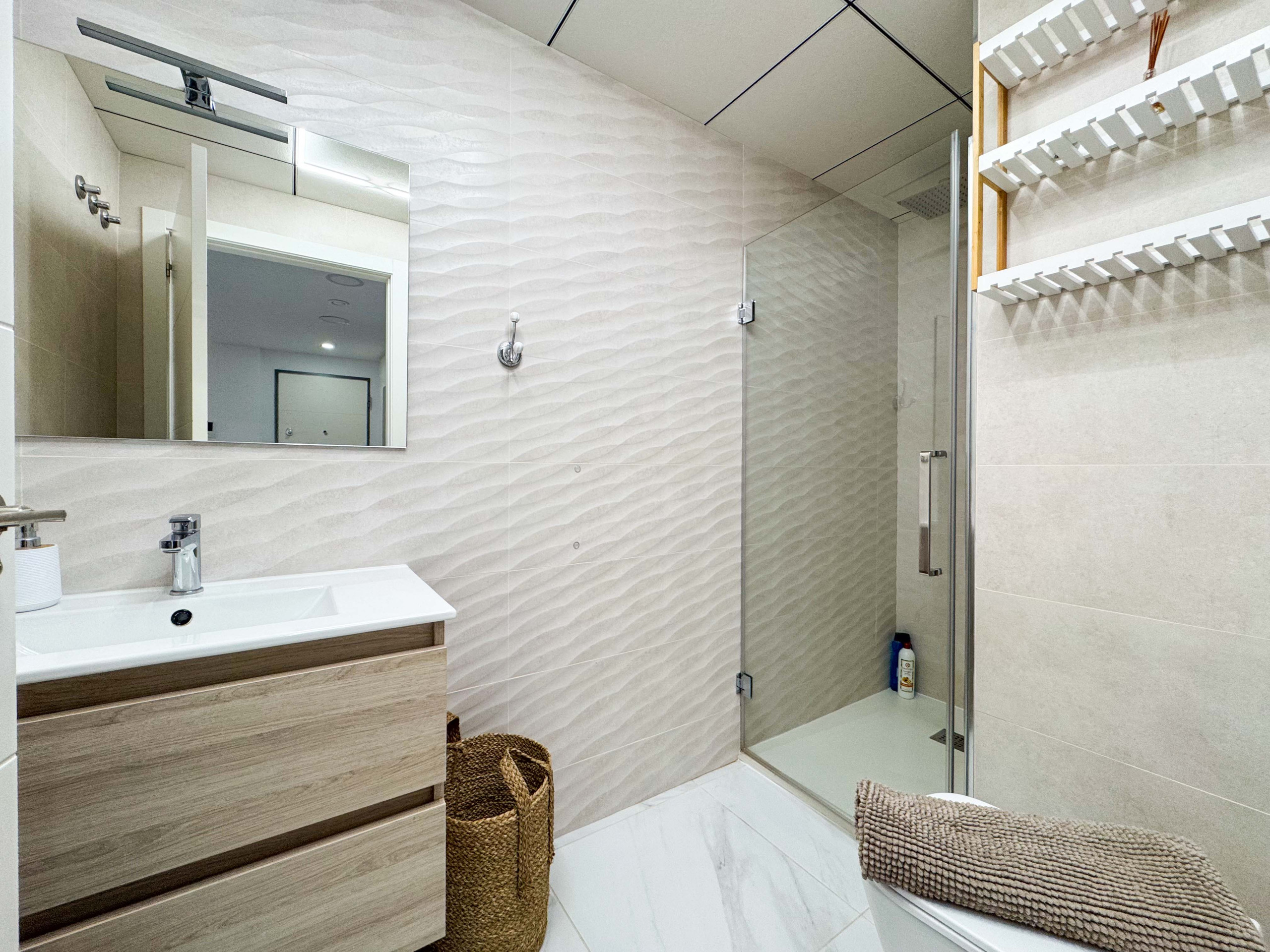 Квартира оборудована кондиционером (тепло/холод) в гостиной. В апартаментах есть все необходимое: WiFi, утюг, фен, стиральная машина, постельное белье и полотенца на каждого человека, телевизор с испанскими каналами.