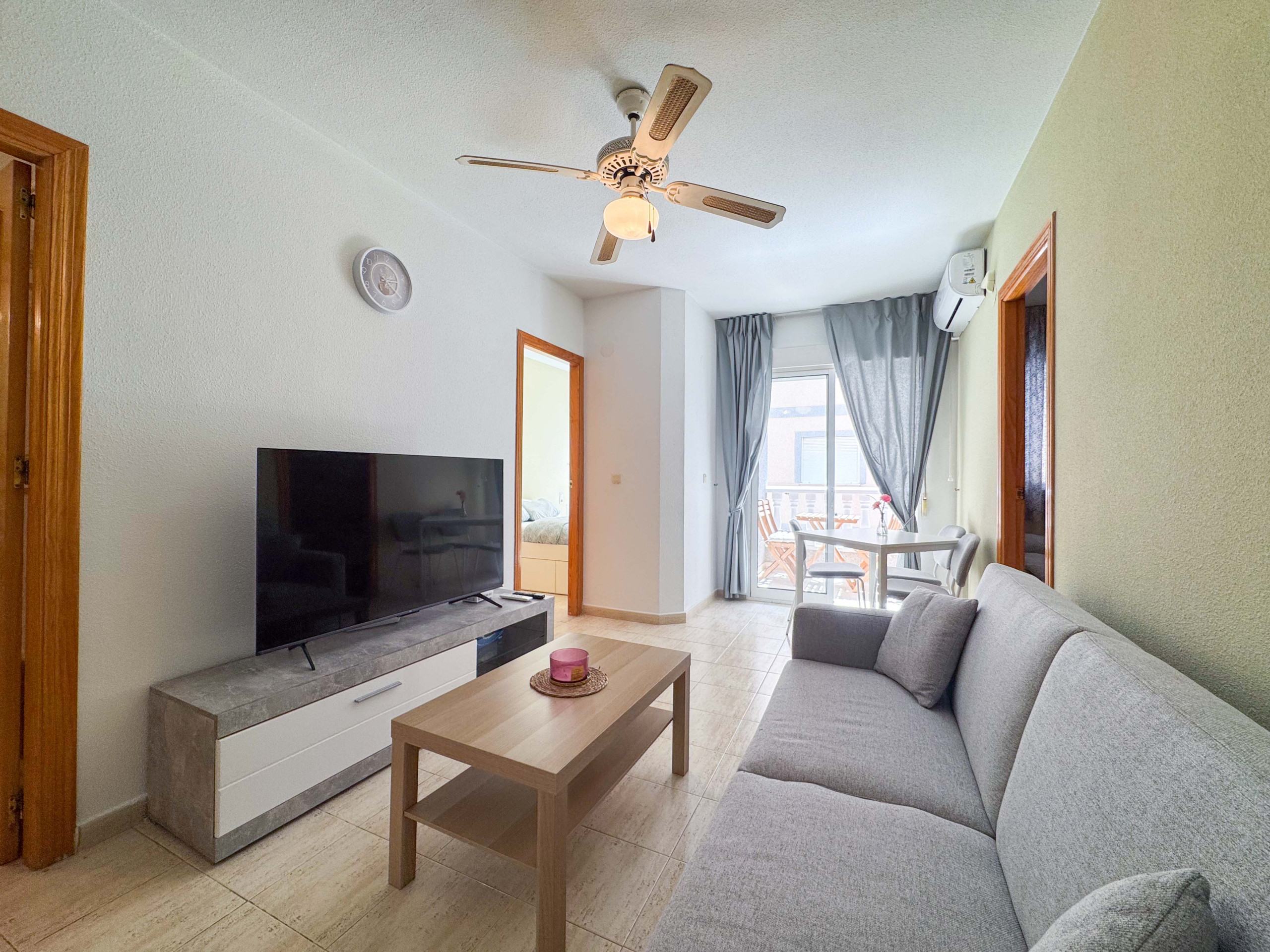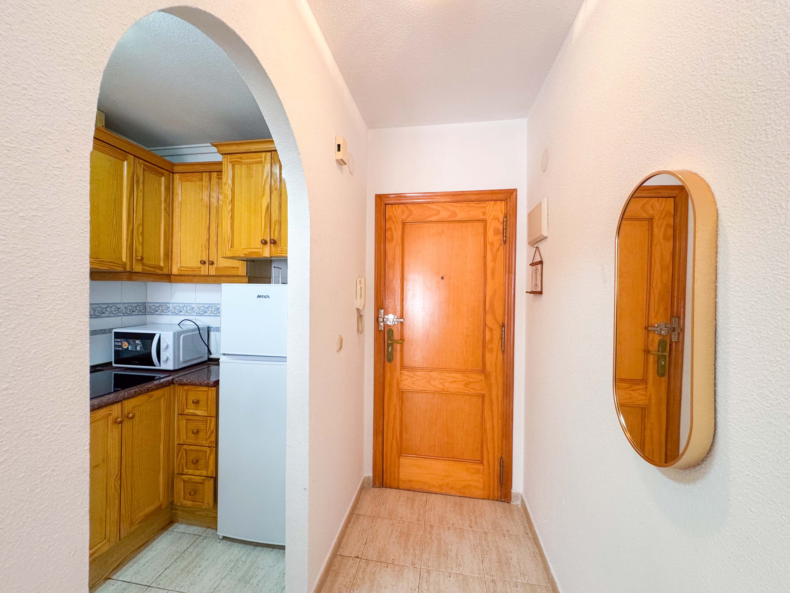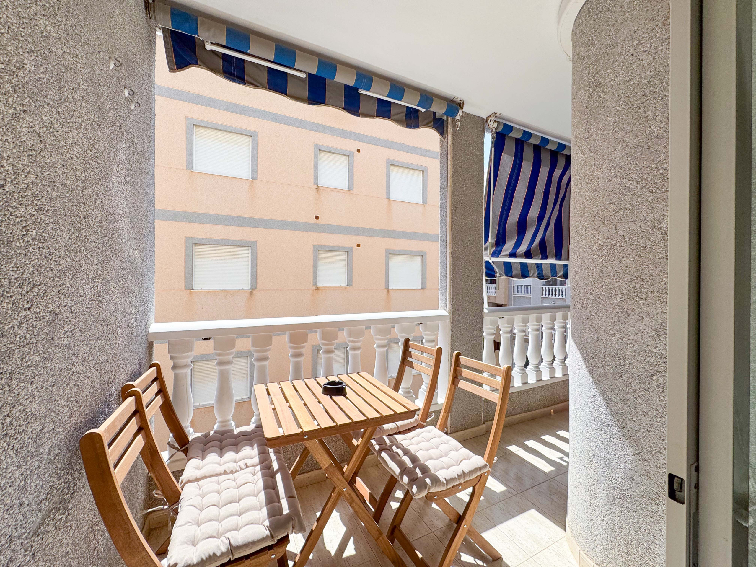 Красивая квартира в Торревьехе состоит из гостиной с кухней, 1 спальни, 1 ванной комнаты с душем, балкона. Вместимость рассчитана на 4 человека (1 двуспальная кровать и 1 диван-кровать).