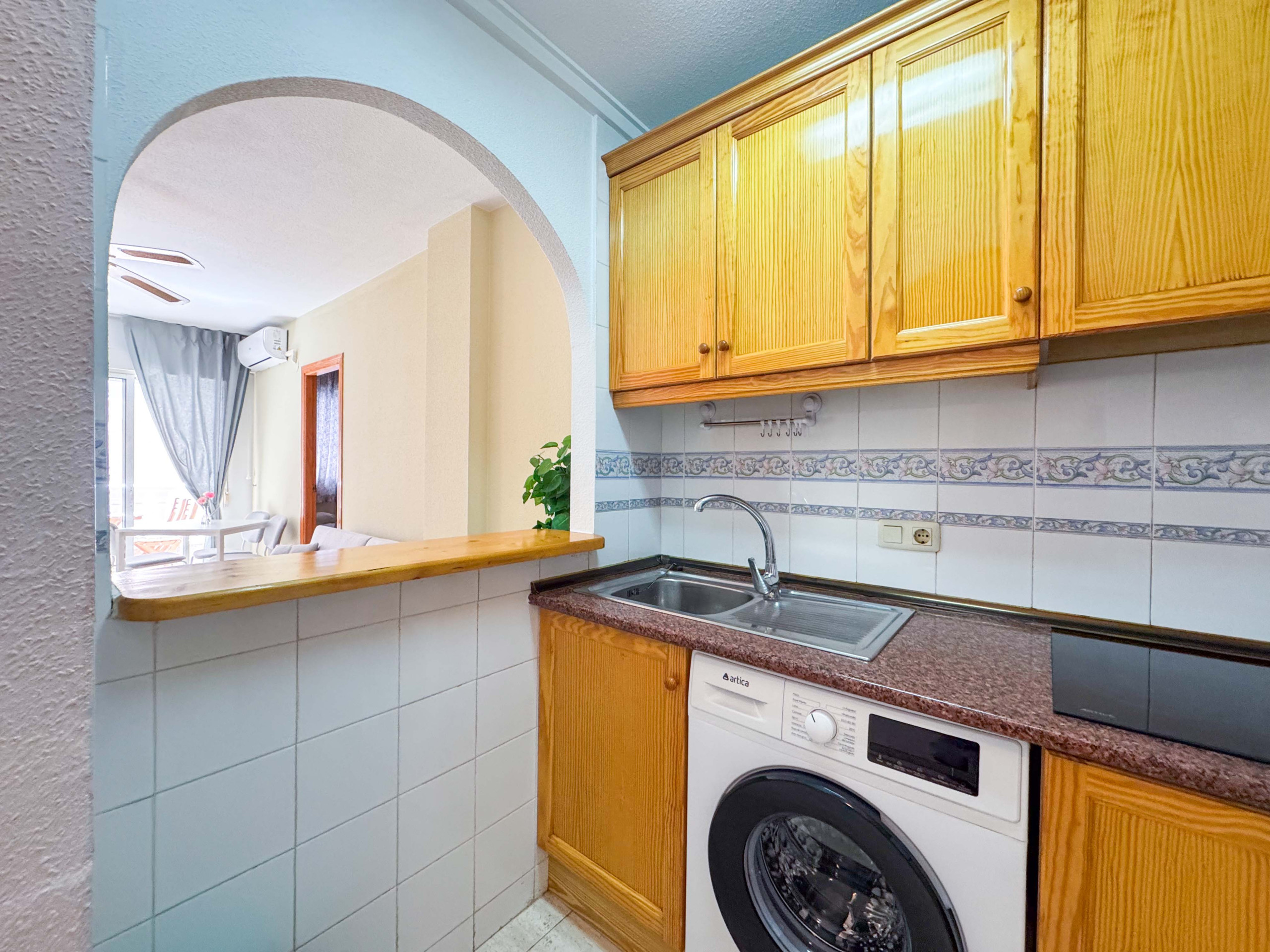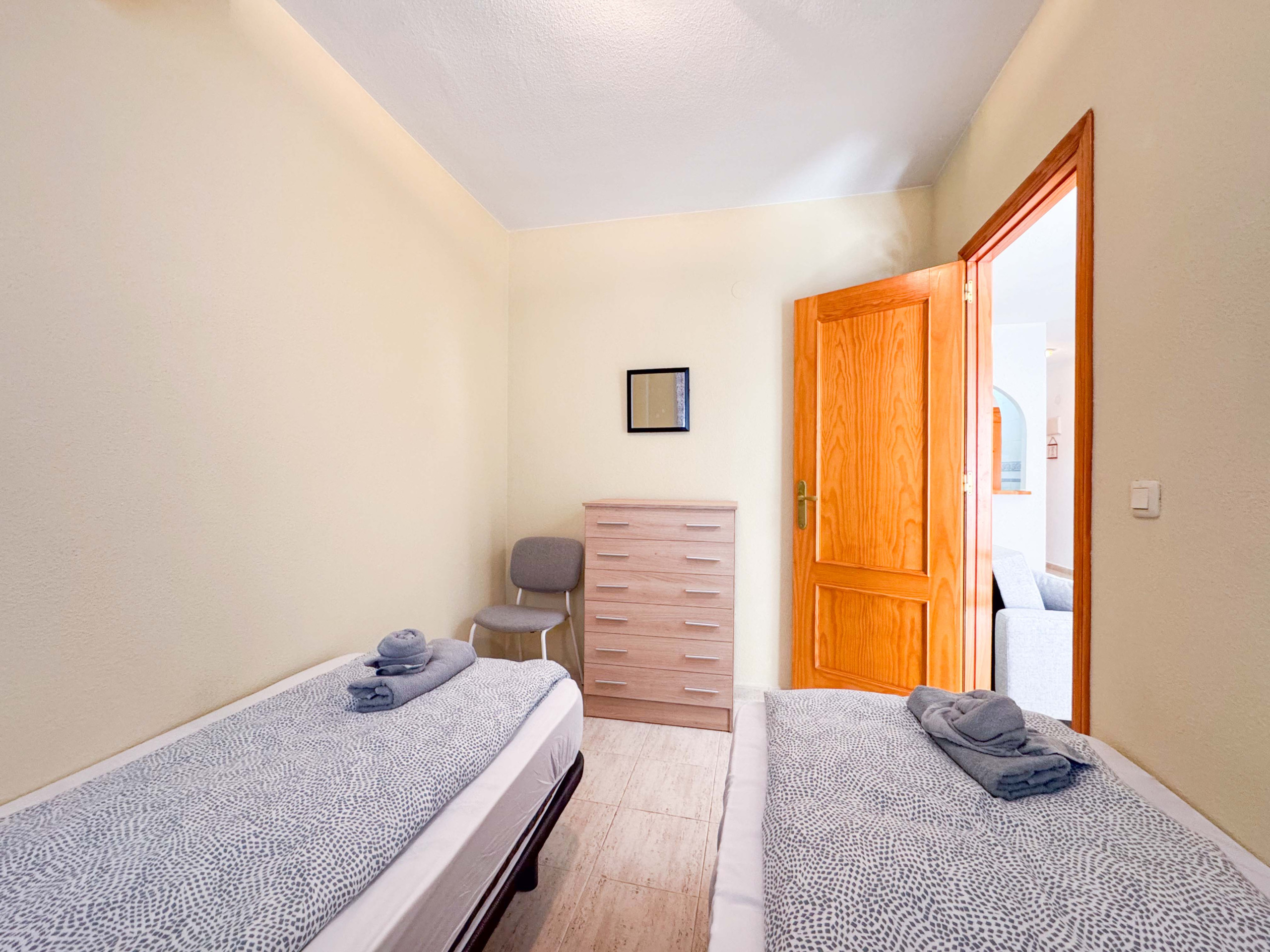 Квартира оборудована кондиционером (тепло/холод) в гостиной. В апартаментах есть все необходимое: WiFi, утюг, фен, стиральная машина, постельное белье и полотенца на каждого человека, телевизор с испанскими каналами.